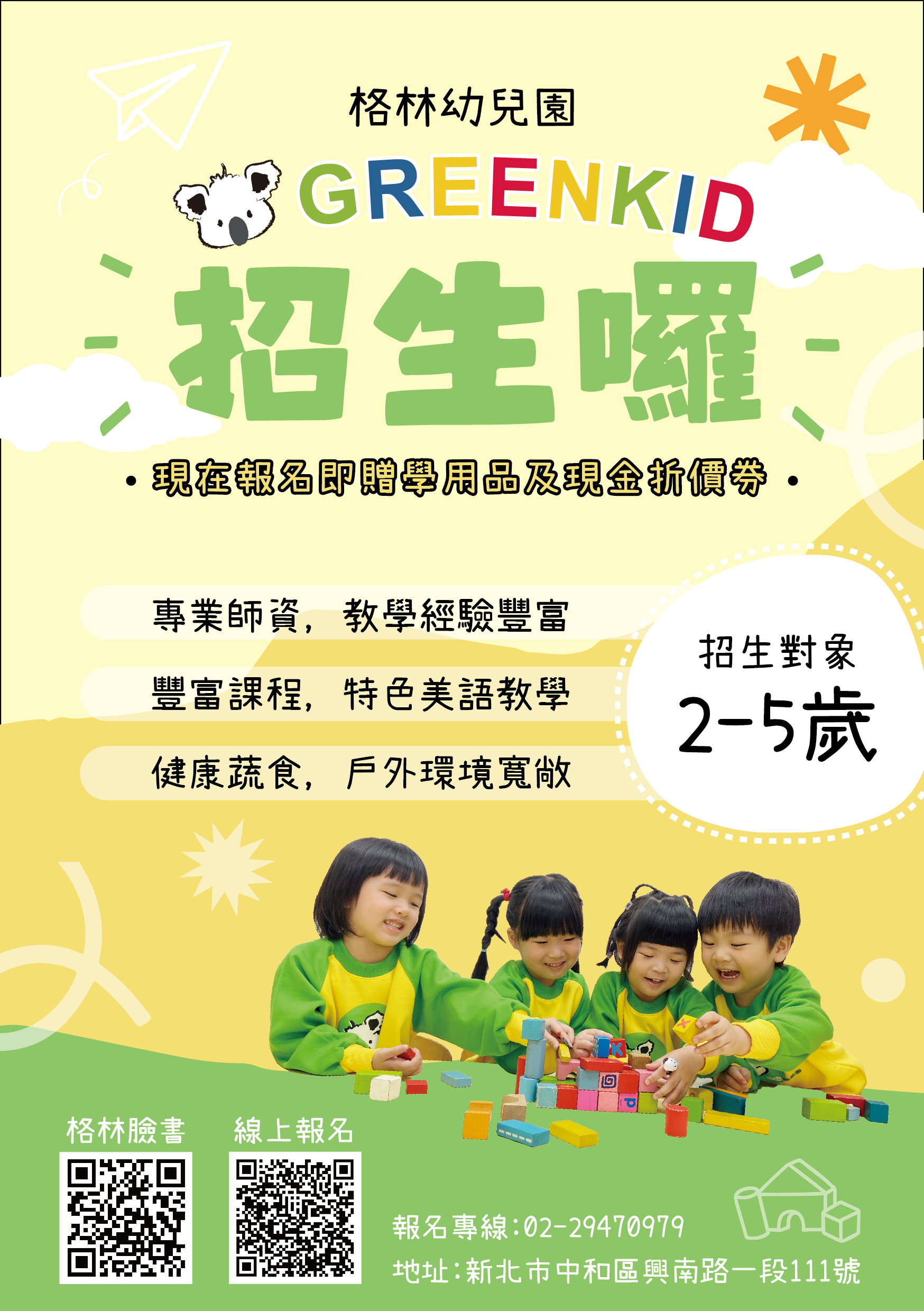 格林幼兒園不只學習ABC,我們更為孩子打造🚀未來的「五大競爭力」,一起加入格林的行列喔!